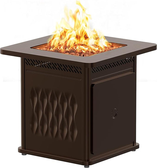 EAST OAK 28" Outdoor Propane Fire Pit Table | 50,000 BTU Gas Fire Pit Table for Outside with Magnetic Lid | Storage Basket & Lava Rocks | CSA Certified for Patio, Garden & Backyard | Brown
