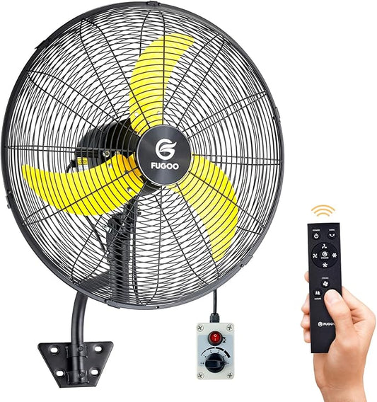 FUGOO 20'' Outdoor Quiet Remote Control Oscillating Wall Mount Fan,All Sealed BLDC Motor,4 Speed Waterproof Outdoor Fan With Remote, Heavy Duty Industrial Wall Fans for House,Patios,Garage,Warehouse