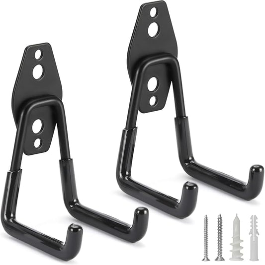 2 Pack Garage Hooks Heavy Duty Storage Organizer Wall Mount Power and Garden Tool Hangers, for Hanging Ladders, Ropes, Hose, Bulk Items