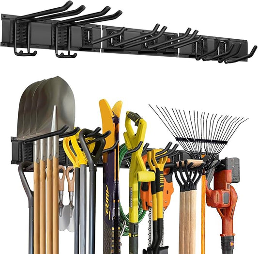 48 Inches Garage Storage, Garage Organization, Wall Mount Garden Tool Organizer, 440lbs Adjustable Heavy Duty Metal Hanging Hooks, Yard Rack Hanger System Shovel Rake Broom Ladder Holder, Men Gift