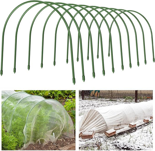 FOTMISHU Garden Hoops, 10PCS Greenhouse Hoops Rust-Free Grow Tunnel, All-in-one 23.6" x 25.6" Garden Stakes with Plastic Coated Plant Supports for Raised Beds Row Cover Garden Fabric