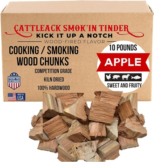 Cattleack Smok'in Tinder Wood Chunks for Smoking Meat, Elevate Your BBQ with Premium Grilling Chunks, Approx.10 lbs All-Natural Kiln-Dried Smoking Wood, Proudly from USA, Grill Like a Pro (Apple)
