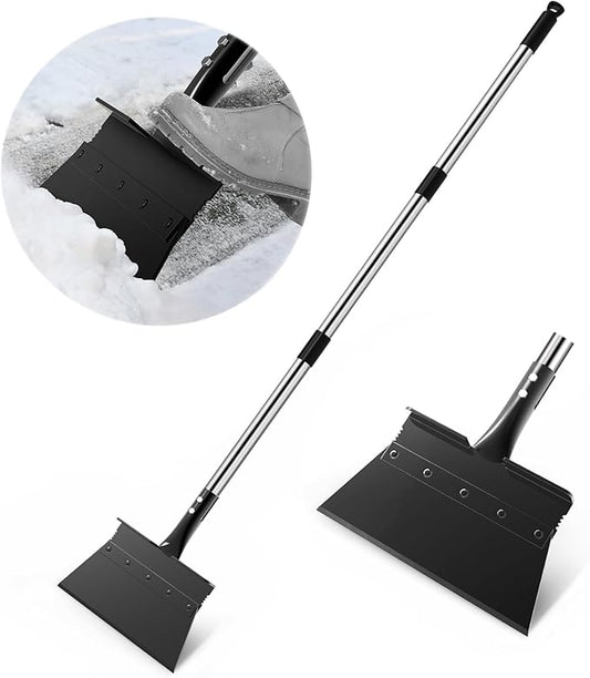 Snow Shovel, EOMEOH Ice Scraper Heavy Duty, 11"Wider Garden Flat Floor Scraper with 53" Long Adjustable Handle, Multifunctional Gardening Spade Shovel, Cleaning Scraper for Driveway, Weed, Lawn Edging