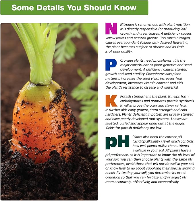 - Quick, at home results for Soil pH, Nitrogen, Phosphrous and Potash