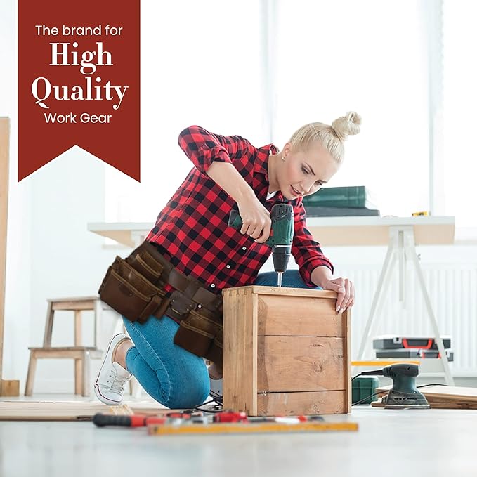 - Streamlined design for enhanced comfort: The ergonomically structured construction of Style n Craft’s leather carpenter tool belt provides balanced weight distribution and reduces strain on your back, allowing long hours of work without discomfort, ensuring consistent performance, and promoting overall well-being.