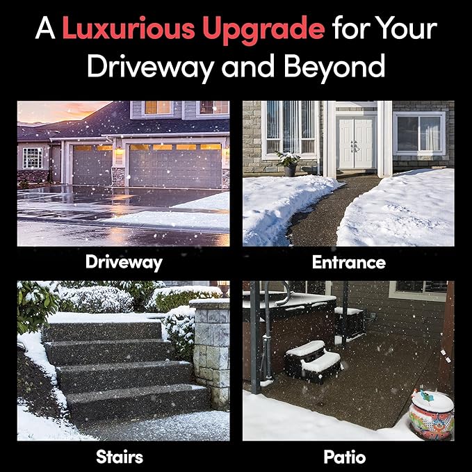- Snow and Ice-Free Winters: The WarmlyYours electric heated snow melting mats melt snow and ice on driveways, creating clear surfaces and reducing the risk of slips and falls. Ideal for heated driveways, sidewalks, walkways, porches, and patios