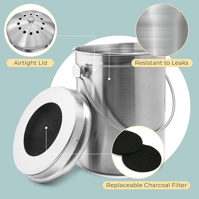 - BUILT TO LAST A LIFETIME: Made of high-grade stainless steel, EPICA's counter top compost bin for kitchen is durable, scratch resistant, and won't leach toxic chemicals into your compost.