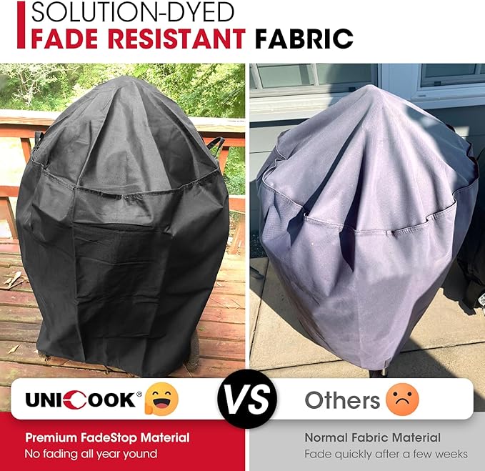 - Fade Resistant & All Weather Protection: Charcoal grill cover is constructed with high density fade resistant fabric with vinyl coating, water repellent processed, exhibits superior colorfastness, resists UV, repels rain, resists tearing and cold cracking, durable and last longer, gives your grill/smoker all year round protection against all elements