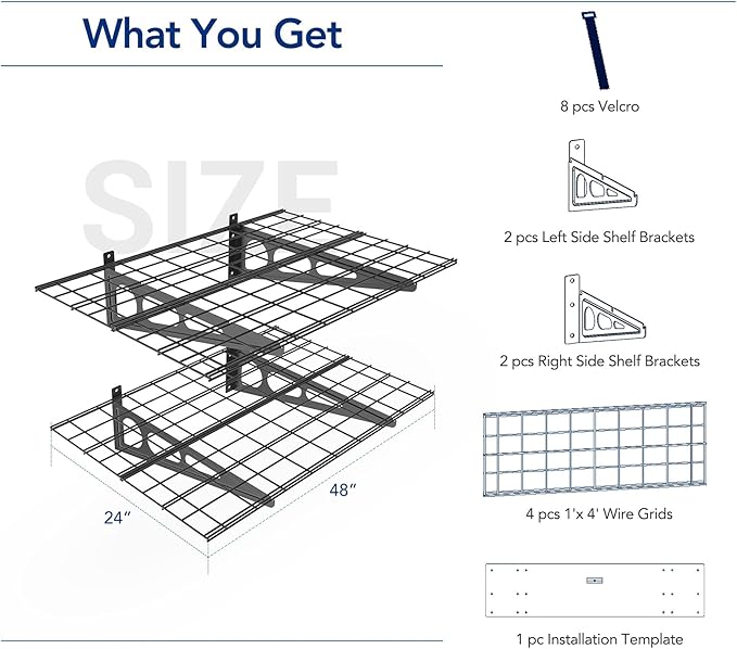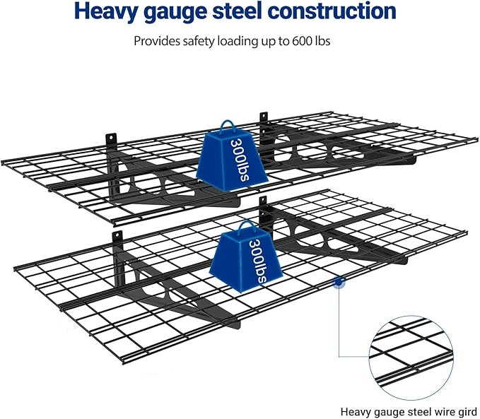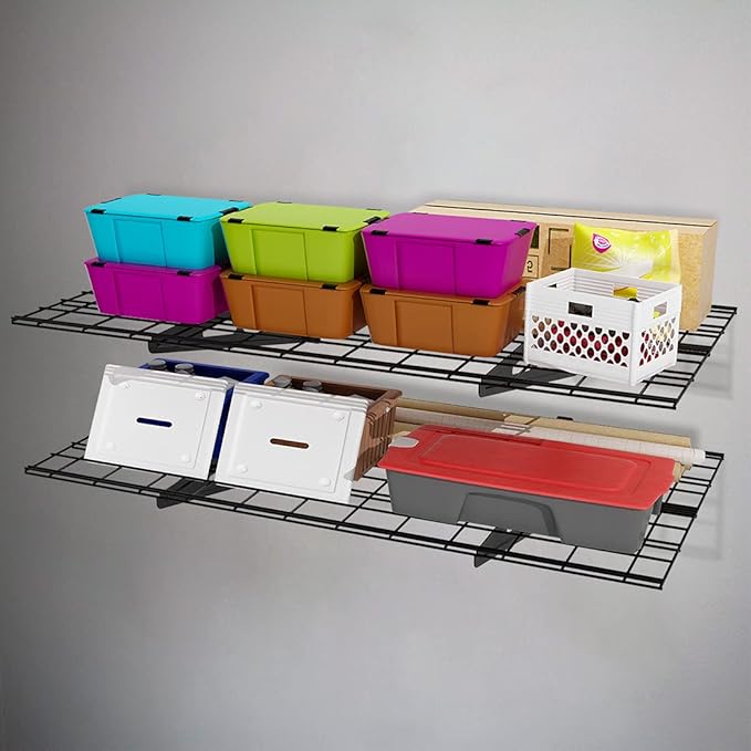 FLEXIMOUNTS 2-Pack 2x4ft 24-inch-by-48-inch Wall Shelf Garage Storage Rack Wall Mounted Floating Shelves, Black
