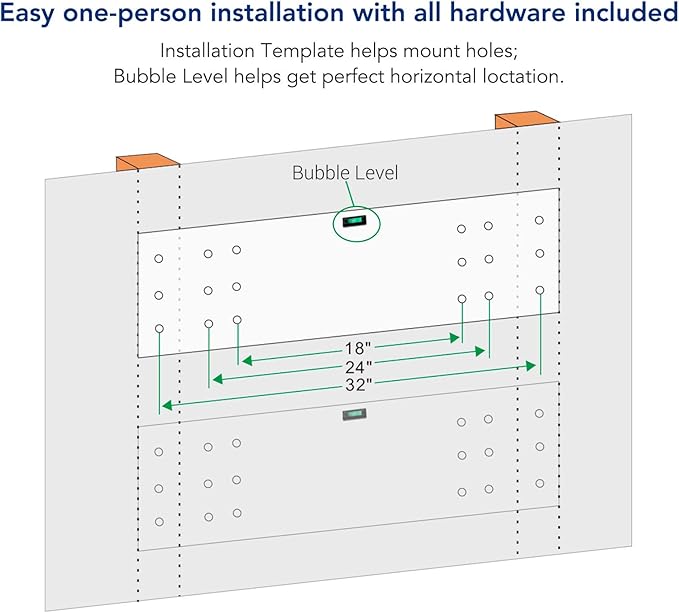 - Easy Installation: Easy one-person installation with all hardware included: Installation Template helps mount holes; Bubble Level helps get perfect horizontal location.