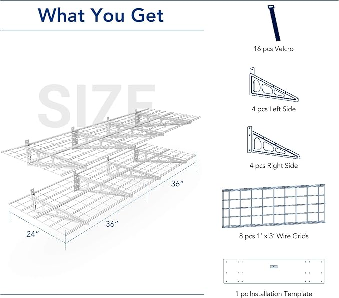 - Quick & Flexible Installation: Suitable for wood stud spacing of 16", 18" or 24". Our garage storage system works with wood studs, concrete walls or brick walls. Can NOT be mounted on metal studs wall.