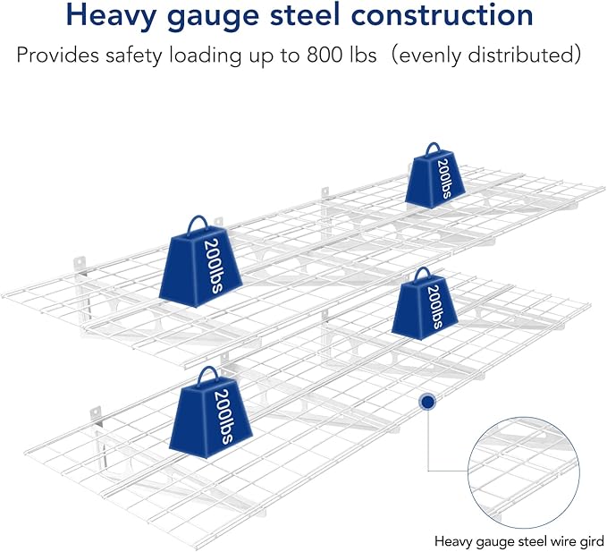 - Maximize Garage Space: This 2x6 ft garage shelf offers ample storage space for your garage, small pantry, or kitchen. (Composition of four 1'x3' shelves per tier). Perfect for organizing bulky items such as tools, tires, and heavy storage bins, this wall shelving is built tough to withstand extreme loads.