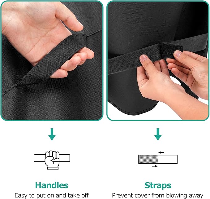 - Convenient Fabric Handles - Two useful fabric handles on both sides near the top of the barbecue grill cover make it easy to position and remove the cover from the grill. It can also be used as loops to hang up at side when your grill is in use.