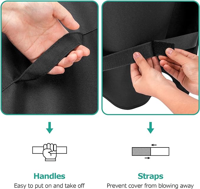- Convenient Fabric Handles - Two useful fabric handles on both sides near the top of the barbecue grill cover make it easy to position and remove the cover from the grill. It can also be used as loops to hang up at side when your grill is in use.