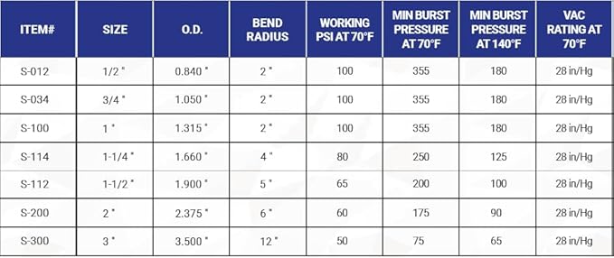 - Outside diameter tolerance +.020 inch; Rigid PVC spiral resists crushing and impact; Temperature range -10 to 150Β°F; Flexible for easy handling and installation;