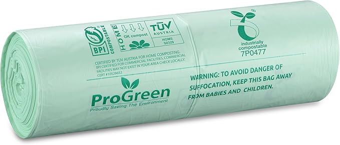 ProGreen Compostable Trash Bags 2.6 Gallon, 100 Count, Extra Thick 0.71 Mil, Small Compost Kitchen Bin Bags, Food Scraps Yard Waste Bags, Compost ASTM D6400 BPI and TÜV AUSTRIA Certified.