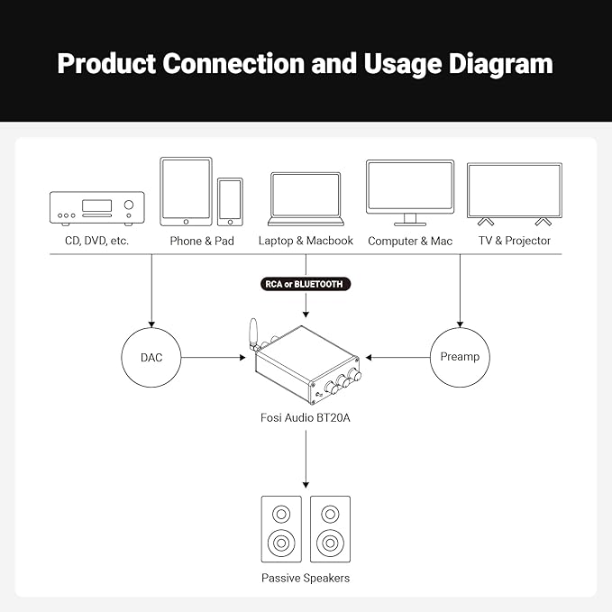 - BLUETOOTH AND RCA INPUTS: The seamless Bluetooth connectivity allowing you to stream music directly from your phone without any dropouts or delays, delivering crystal-clear sound and impressive volume for your home audio setup