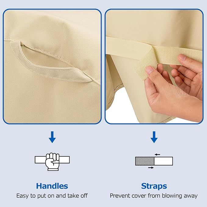 - Convenient Handles - Two useful fabric handles on top of the patio barbecue grill cover make it easy to put on and take off from the grill, also can be used as loops to hang up at side when not in use.