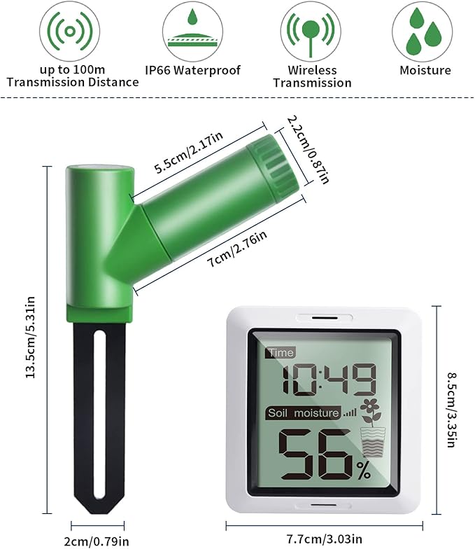 - Indoor & Outdoor Use: waterproof moisture sensor, can be used for indoor outdoor potted plants, lawn, garden and more