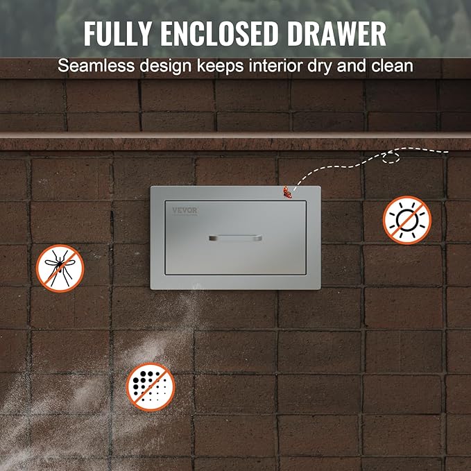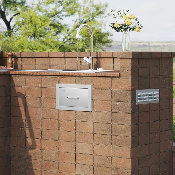 VEVOR 14x8.5 Inch Outdoor Kitchen Drawers Stainless Steel, Flush Mount Double Drawers,14W x 8.5H x 23D Inch, with Stainless Steel Handle, BBQ for Outdoor Kitchens or BBQ Island