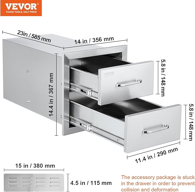 - High-Quality Material: Our outdoor kitchen drawer is made of food-grade stainless steel, making it has excellent hardness and not easily eroded, durable, and sturdy to use. And it is also hard enough to contain kitchen tools in different materials.