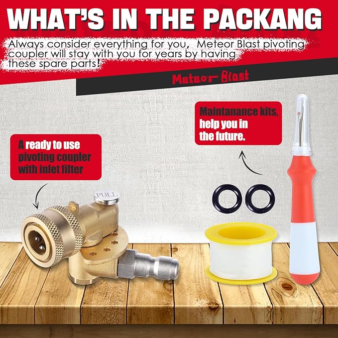 - Easy connection between pressure washer wand and pressure washer nozzle tips. It will save you considerable time for cleaning hard-to-reach areas , such as vehicle undercarriage, chassis, rims, pool wall, water tank and ideal for gutter cleaning. Undoubtedly this well-designed attachment pivoting coupler will save you unimaginable time in regular and special pressure cleaning work if you dislike bend down, squat down and stretch your arms for cleaning some inaccessible place and corner. This pivoting coupler will be always needed in anyway.