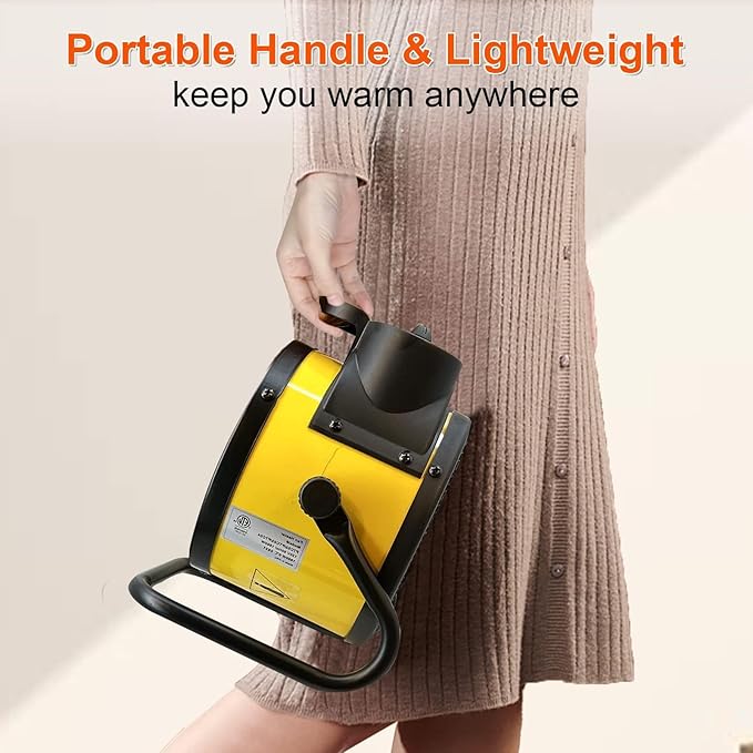 - 【Adjustable Heat Setting for Outdoor】☀ Do you want a warm hug when coming home from the cold outside? Turn on this garage space heater fan, it will heat up instantly & welcome you home by a warm hug. It has 3 heat settings: fan only, low and high heat. The 1500 watt engine can heat the atmosphere quickly and warm your body in 3 seconds without noisy. You can enjoy natural wind in Autumn, hot wind in cold Winter.