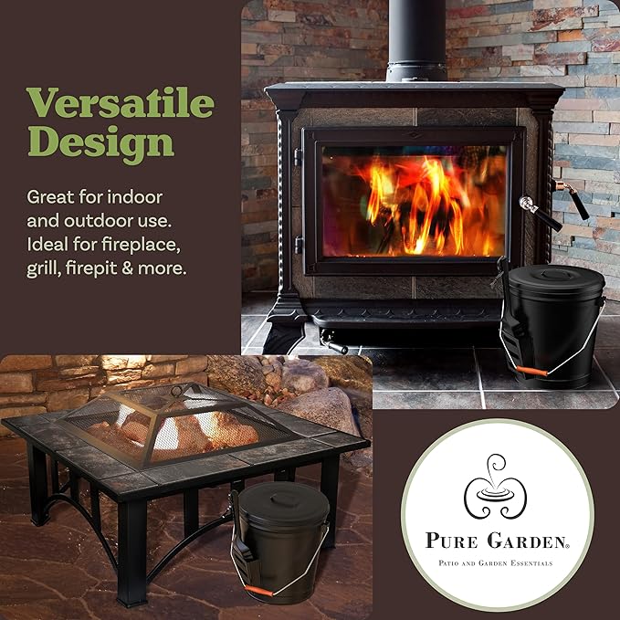 - FIREPLACE ASH BUCKET - Tote hot ashes from your wood stove, fireplace, or firepit to a safe disposal spot with this metal ash bucket. The smart design with lid and shovel keeps ashes inside while in transit and enables quick, easy, and safe cleanup.