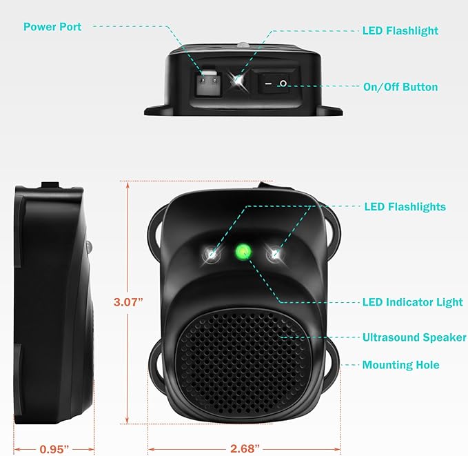 - 2-in-1 High-Efficiency Rodent Repellent: Combines high-powered variable-frequency ultrasound with 3 bright flashing LEDs to disrupt rodent senses more effectively and for longer-lasting protection.