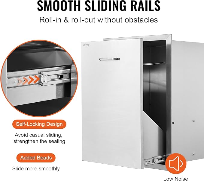 VEVOR Outdoor Kitchen Trash Drawer 19.7"W x 29"H x 15.7"D Inch Outdoor Kitchen Drawers Stainless Steel for Outdoor BBQ Island Kitchen
