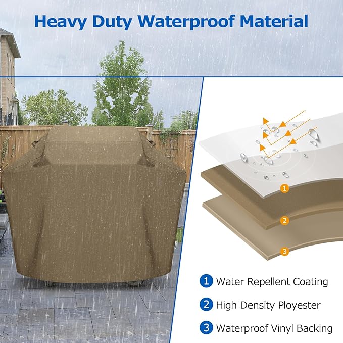 - Waterproof Construction - Waterproof tapes are sealed along the reinforced double stitching seams to prevent water leaking. Keep your grill dry and clean in all weathers
