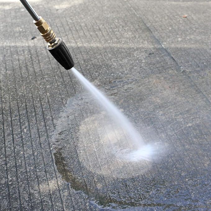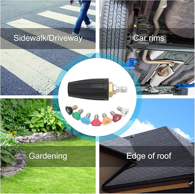 - 1/4" QUICK-CONNECT PLUG FOR EASY OPERATION - Equipped with 1/4" quick-connect plug, making both the turbo nozzle and 7 different degrees spray tips quite easy in connecting and operating. They fit most brands of pressure washer wands and guns. The nozzle size is 3.0 GPM and they can withstand the maximum temperature of 212° F.