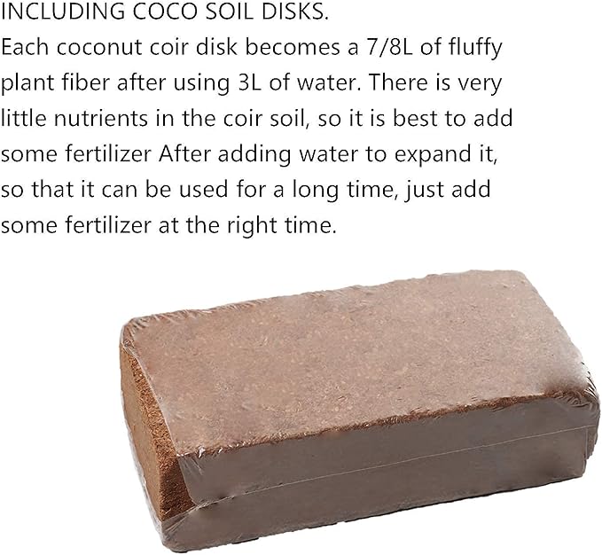 - Includes Soil: Each coconut coir disk becomes a 1 quart of fluffy plant fiber after using 0.5 quart of water, so you have the nutrients you need.