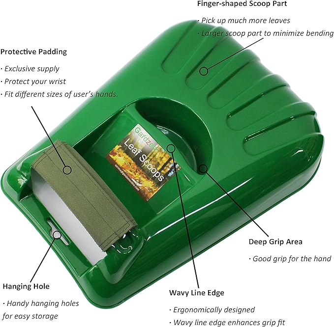 - More Ergonomically Designed! - Fit different sizes of user’s hands. Gardzen Leaf Scoop is comfortable on the wrist and has good grip for the hand. Don’t worry it will bother the back of your wrists at times, just from the pressure, there is a protective padding and work gloves to avoid such pain.