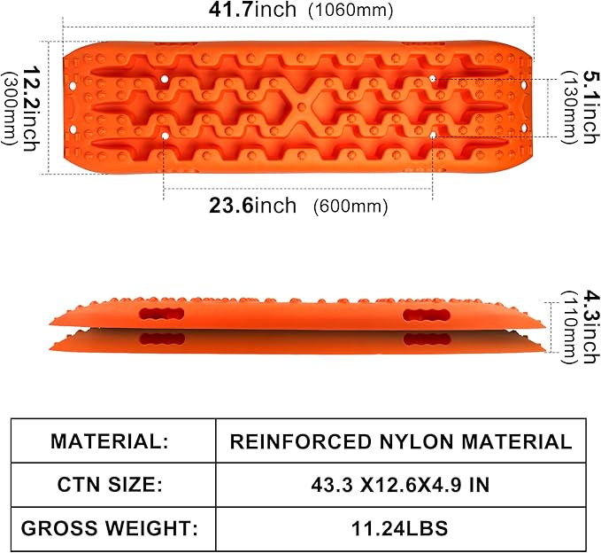 - Each traction mat is 41.7 inches long, 12.2 inches wide, and weighs 11.2 lbs together.Mounts easily to most available roof racks with optional mounting pins.A sturdy carry bag serves as an added benefit, bring more convenient for daily use.Lifetime service available.