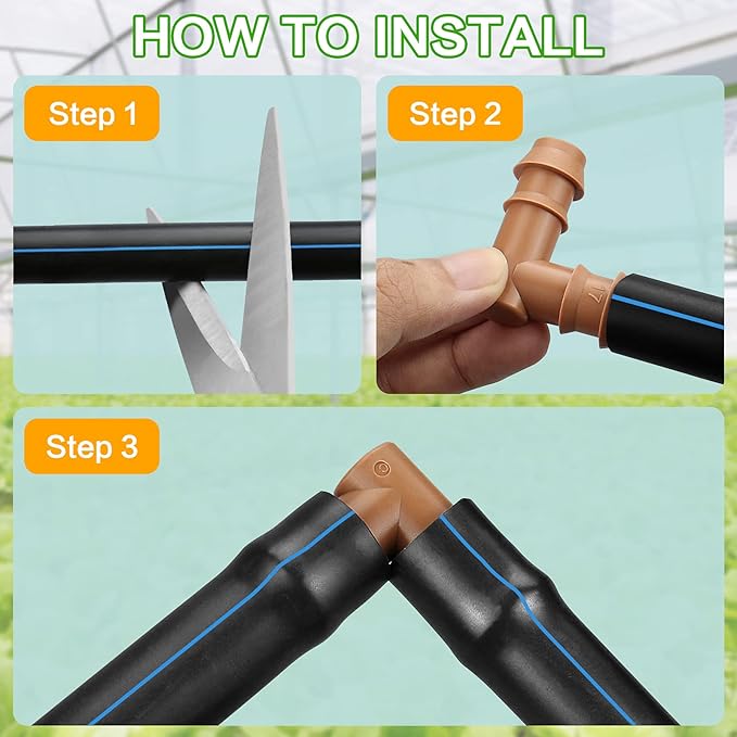 - √【EASY INSTALLATION】:Easy to install without glue, tools or clamps. Barbed ends grab 1/2’’ tubing tightly for a secure leak-proof connection. Tips: Heating the end of hose to help it easily connect with these drip elbow.