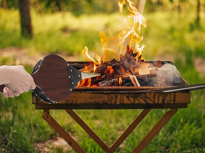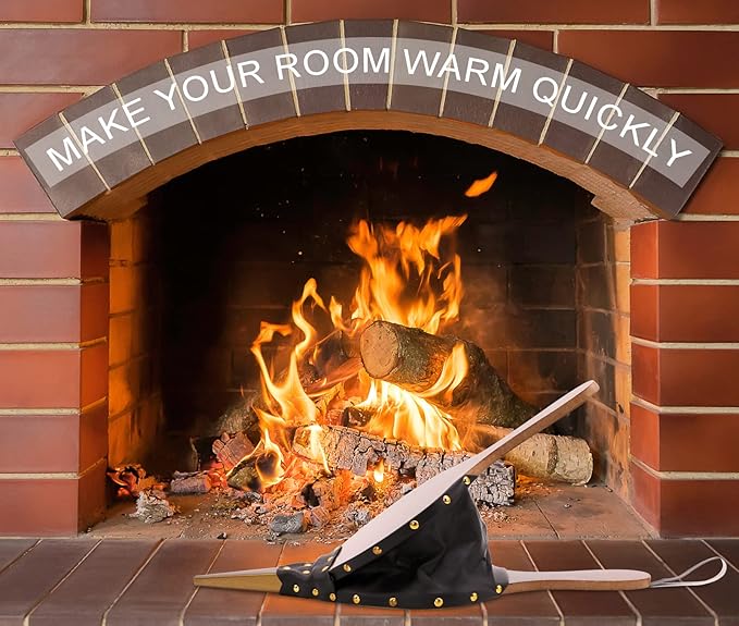 - PREMIUM MATERIAL: Our wooden fireplace bellows is made of true solid wood material,durable powder-coated finish,elegant appearance.High-quality of rivet ensures that it firmly nails into the bellows to non-fall off. Made of heat-resistant leather.