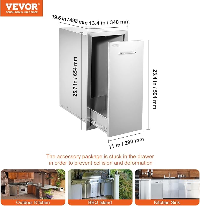- Wide Application: The outdoor storage drawers are perfect for outdoor and indoor kitchens, especially BBQ islands, it can store most kitchen utensils, like dishes, forks, and spoons. Besides, it can be used in any weather condition, even windy or rainy days.