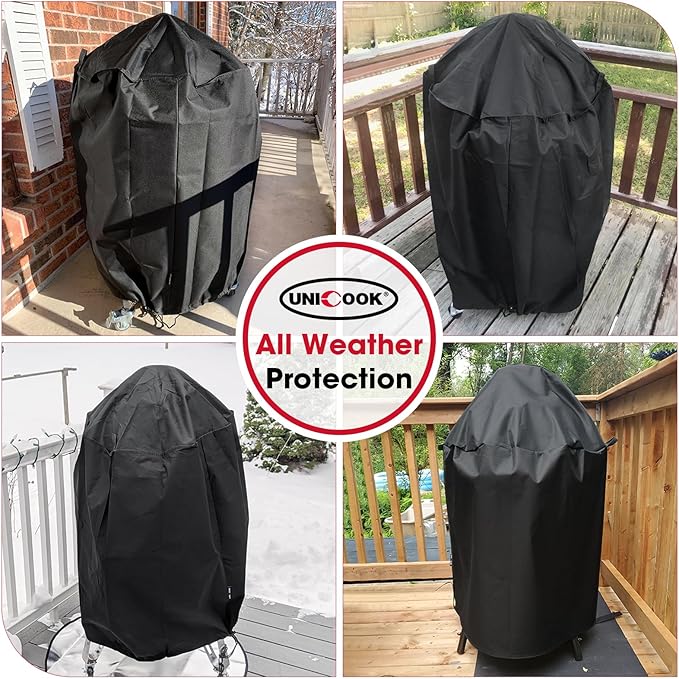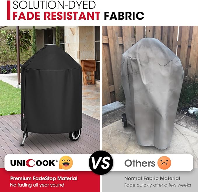 - Wind Resistant: Unicook kettle grill cover includes two pairs of long fastening straps, keeps cover securely fastened and prevents it from slipping or blowing off. Some covers on the market only have one pair of strap, the cover will be easy to blow away