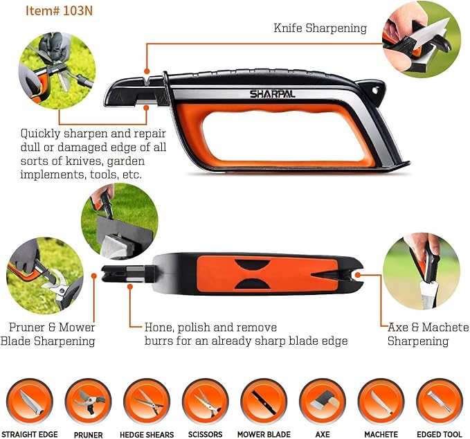 SHARPAL Pocket Knife Sharpener & Garden Tool Sharpener, Sharpening Straight and Serrated Knives, Lawn Mower Blade, Axe, Pruners, Shears, Scissors, Combo Gift Pack w/Greeting Card