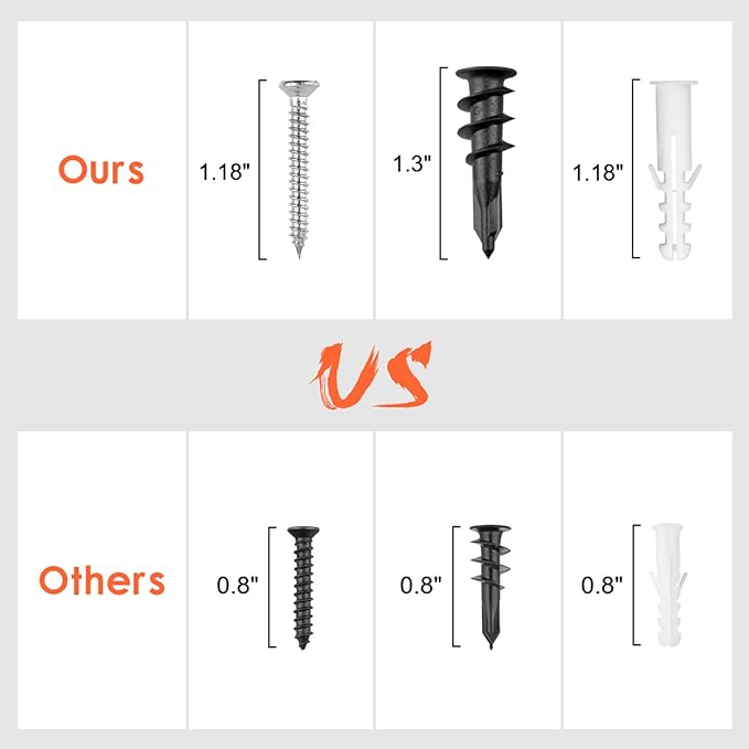 - 【EASY TO INSTALL & BEARING CAPACITY】 These garage hooks are suitable for plaster, wood, brick, and concrete walls. You can install them effortlessly. For plaster walls, (1)Mark two big holes; (2)Twist the black wide thread screw plug in. For wooden/brick walls, (1)Mark two small holes; (2) Drill a hole and hammer in the white plastic anchor; (3) Twist the steel screw nail into the anchor. The bearing capacity depends on different types of walls; different sizes of tool hooks and screws