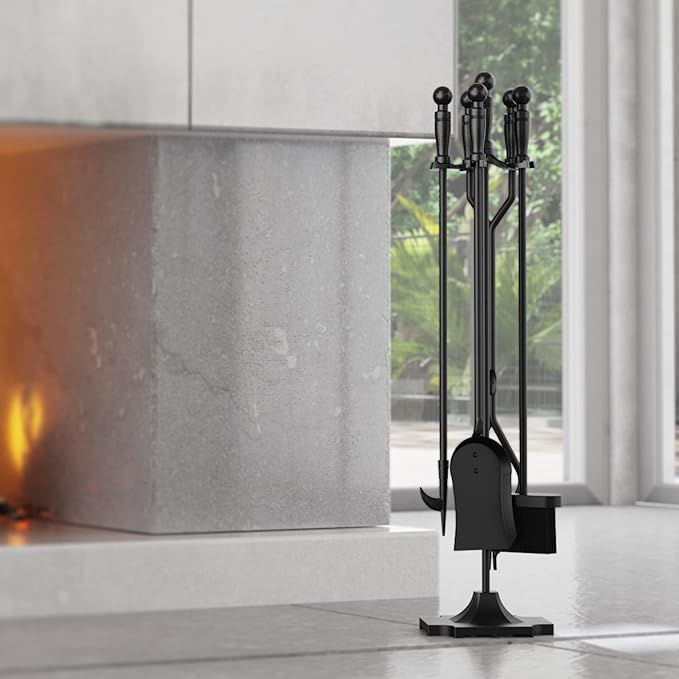 - 5 PCS Combination of Fireplace Tools: Measures 32 inch height black fireplace set,works great with most brass fire screens,black fireplace log holders and wood racks,fireplace ash buckets,fireplace bellows,fireplace grates or outdoor fire pit tools.