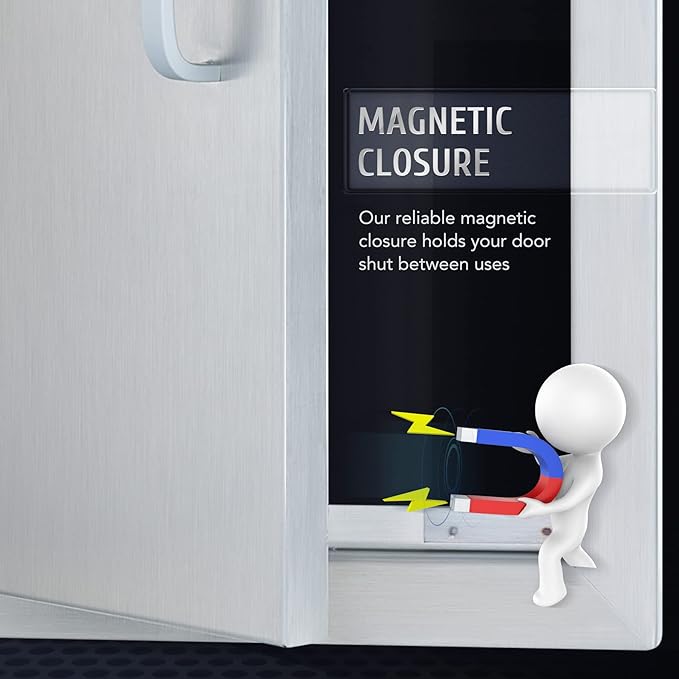 - SAFE & CONVENIENT: The sleek handle provides a comfortable and solid grip; dual integrated magnets for each door ensure reliable closure every time, keeping out bugs and pests; squeakless hinges ensure quiet and effortless operation; and the flush and rounded edges protect children and busy cooks from any accidental injury.