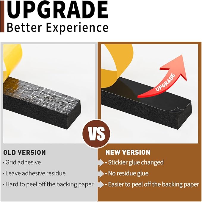 - UPGRADED STRONG ADHESIVE: The foam weather stripping has upgraded strong adhesive backing, waterproof and non-degumming, stick firmly. Compared with grid backing, it has no glue residue and becomes easier to peel off the backing paper