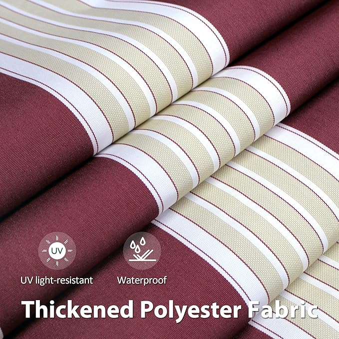 MCombo 11.5x9.5 Feet Manual Retractable Patio Door Window Awning Sunshade Shelter Outdoor Canopy,1210 (Brick Red with Beige Stripes, 11.5'(L) x 9.5'(W))