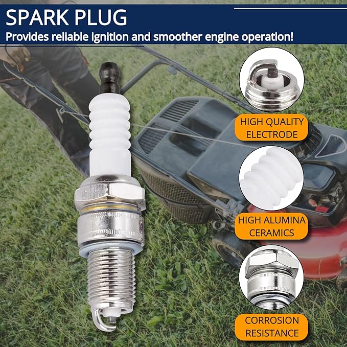 - SPARK PLUG MATERIAL: The Spark Plug made with carefully selected materials, provides dependable ignition for the engine's fuel-air mixture and smoother engine operation. This kit extending the service life of your mower