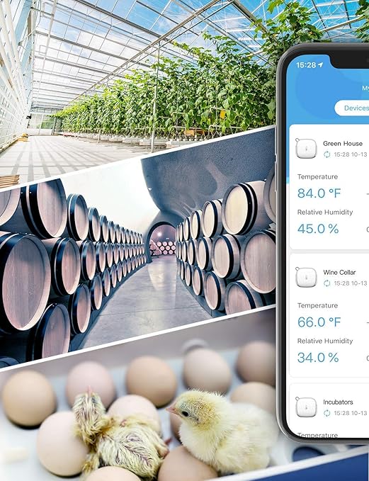 - Alert Function: Set preset temp and humidity ranges, and receive an app alert immediately whenever levels fall out of that range, which helps you react faster to sudden changes in your basement, greenhouse, etc. Only supports Bluetooth settings.