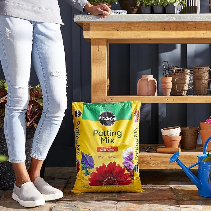 - Miracle-Gro Potting Mix feeds container plants for up to 6 months so you get more blooms for more color (vs. unfed plants)