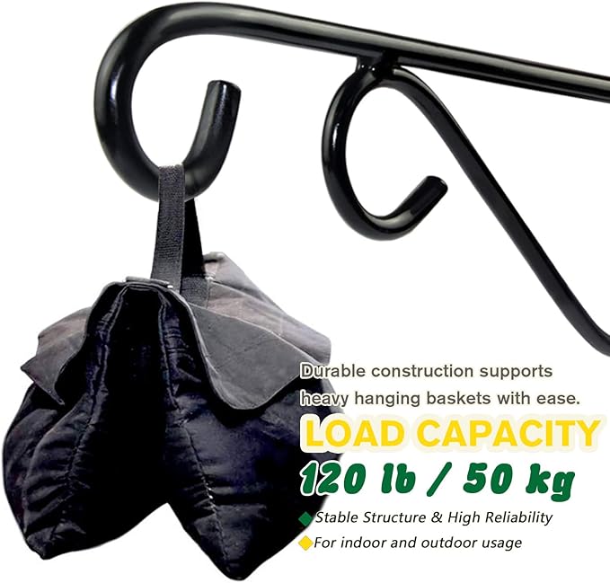 - 💐STURDY & SIMPLE STYLE HANGER PLANTER HOOKS: Decorative simple shape and high-strength welding process, stronger than other similar plants bracket. Sturdy and durable enough to provide high load capacity (120lb) and offer the safest protection for your heaviest pots and baskets or hanging item such as metal sign fruit basket plant hanger shelves and plant drying rack.