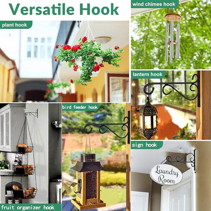- 💐DECORATE YOUR HOUSE MORE BEAUTIFULLY: with the unique nostalgia of vintage iron art for compatible decorative, this wall hanging brackets is very great for hanging various flowers, plants, wind chimes, lanterns, bird feeder holiday decorations, string lights and other ornaments to create a landscaping space and charming atmosphere to your indoor-outdoor place.